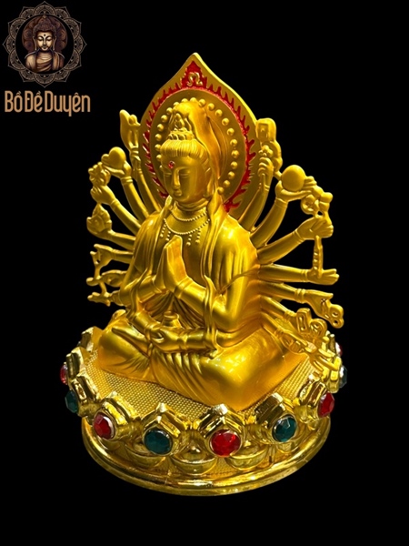 Tượng Thiên Thủ Thiên Nhãn 2 Mặt – biểu tượng đại từ đại bi, mang năng lượng bảo hộ, che chở bình an và thu hút tài lộc. Sản phẩm được chế tác từ hợp kim cao cấp mạ vàng sang trọng, phủ lớp sơn tĩnh điện chống gỉ, bền đẹp theo thời gian.