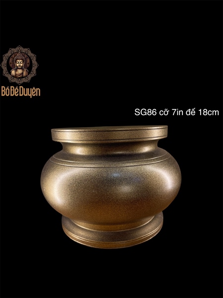 Sản phẩm có kích thước 7in đế 18cm, bề mặt nâu đồng sang trọng, hài hòa, giúp tôn lên sự trang nghiêm của ban thờ. Thiết kế bát hương dáng tròn cân đối, trơn nhẵn, dễ bài trí và sử dụng lâu dài trong thờ cúng gia tiên, thờ Phật.