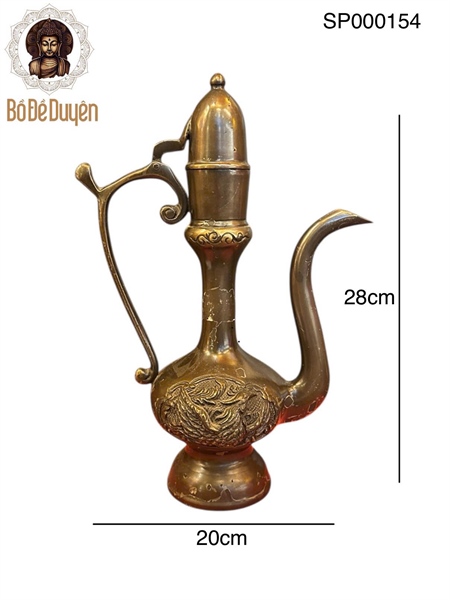 Bình rượu đồng giả cổ được chế tác theo dáng bình xưa, chất liệu đồng ánh trầm, bề mặt xử lý giả cổ tự nhiên. Thân bình chạm họa tiết tinh xảo, vòi cong mềm, tay cầm chắc chắn, tổng thể hài hòa – vững dáng – mang nét trang nghiêm cổ điển.