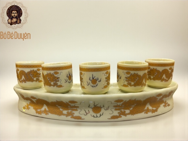Kích thước: Dài 25cm, gồm 5 chén nhỏ gắn liền, tiện lợi khi bày biện trên bàn thờ.