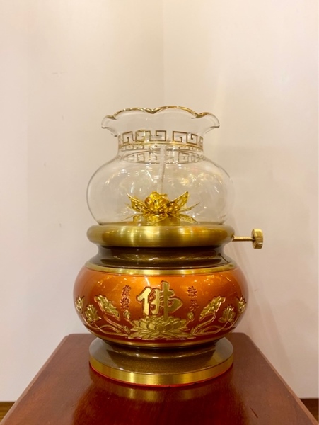 Đèn dầu hình bát hương chữ phật mầu đỏ vàng
