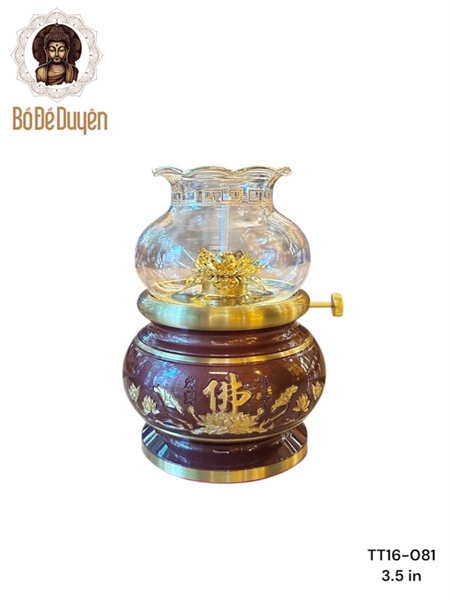 Đèn dầu hình bát hương chữ phật mầu đồng đỏ