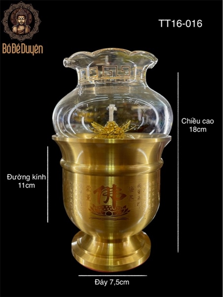 ✔️ Thiết kế: Thân đèn khắc chữ Phật và hoa sen tinh xảo, mang ý nghĩa thiêng liêng trong Phật giáo.