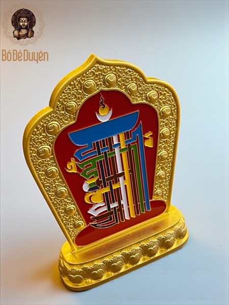Sản phẩm được chế tác tinh xảo từ hợp kim cao cấp, phủ sơn vàng và màu sắc rực rỡ, từng họa tiết chạm khắc sắc nét, phù hợp cúng dường – trưng bày – phong thủy.