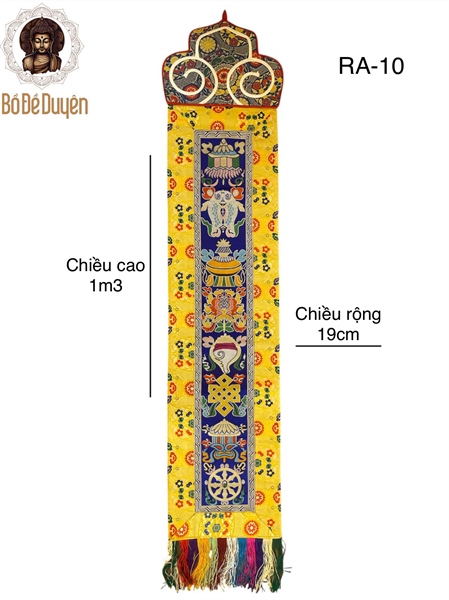 – Chất liệu: Vải gấm cao cấp, dệt hoa văn truyền thống Phật giáo