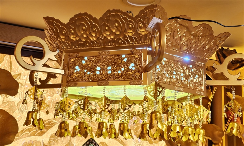 Ánh sáng vàng từ Bảo Cái là biểu tượng của Phật quang vô lượng – soi rọi tâm trí, khai mở trí tuệ, hướng tâm về thiện.