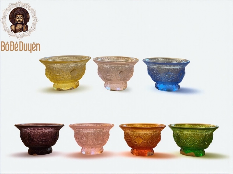 CỐC CÚNG LƯU LY 7 MÀU – BỘ CÚNG DƯỜNG TRANG NGHIÊM • THANH TỊNH • CAO CẤP