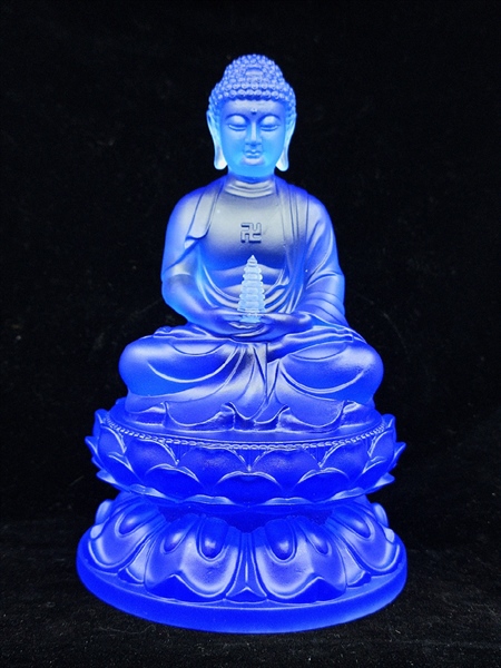 Tượng Dược Sư Lưu Ly Xanh Lam được chế tác tinh xảo từ chất liệu lưu ly cao cấp, màu xanh lam trong suốt biểu trưng cho năng lượng chữa lành, tiêu trừ bệnh tật và tai ách. Đức Phật Dược Sư được tôn kính là Đấng Y Vương, mang ánh sáng trí tuệ cùng 12 đại nguyện cứu độ chúng sinh khỏi khổ đau thân – tâm.