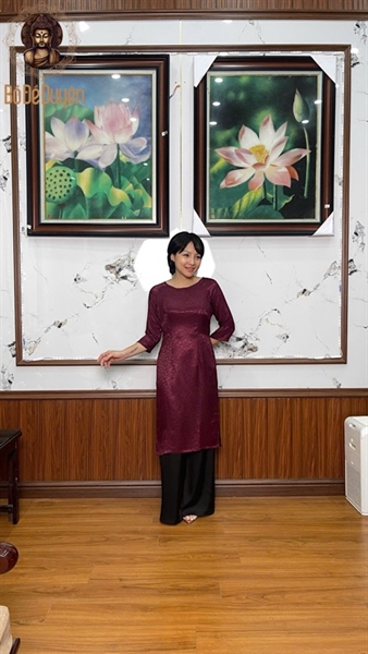 Vải gấm nâu đậm có ánh nhẹ sang trọng, dày dặn vừa phải nhưng vẫn mềm và thoáng khi mặc. Chất gấm giúp áo giữ form tốt, tôn dáng và tạo hiệu ứng bắt sáng rất đẹp. Vải ít nhăn – dễ mặc – rất phù hợp trong các buổi lễ, sự kiện hoặc chụp ảnh.