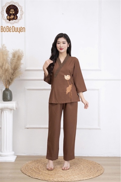 Bộ đồ đũi cổ nhật hoa sen màu hạt dẻ là lựa chọn hoàn hảo cho những ai yêu thích phong cách giản dị, thanh tịnh nhưng vẫn tinh tế và trang nhã. Thiết kế mang cảm hứng từ trang phục truyền thống Phật tử, kết hợp cùng chất liệu đũi cao cấp, giúp người mặc luôn cảm thấy thoải mái, nhẹ nhàng và tôn nghiêm.