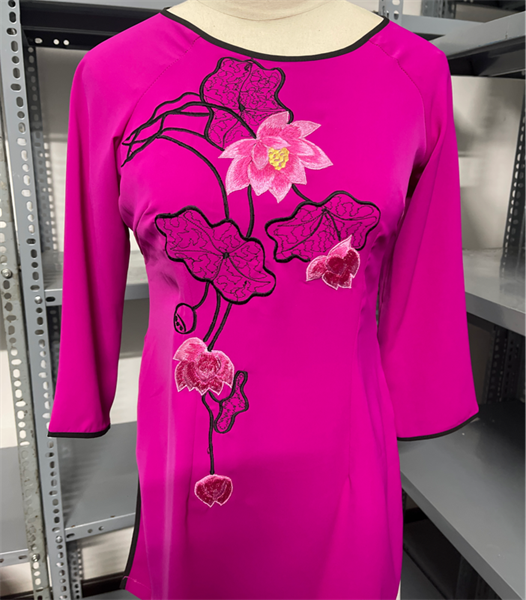 Bộ Hồng 70cm - Thêu Hoa - Cổ Viền Thuyền - M