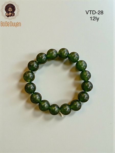 Vòng tay đá Phật Ngọc xanh lá 12 ly được chế tác từ đá tự nhiên, hạt tròn lớn, màu xanh trầm sâu, độ bóng cao và đồng đều. Thiết kế đơn giản nhưng trang nghiêm, phù hợp đeo hằng ngày, khi tu tập, thiền định hoặc làm trang sức tâm linh thanh nhã.