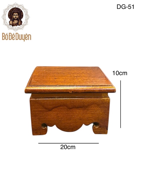 Đế gỗ vuông có thiết kế chắc chắn, dáng vuông cân đối, giúp tượng Phật, Bồ Tát hoặc pháp khí an vị ổn định – ngay hàng – đúng tôn ti trên bàn thờ. Kiểu dáng vuông tạo cảm giác vững chãi, phù hợp những không gian thờ cần sự nghiêm cẩn và rõ nếp.