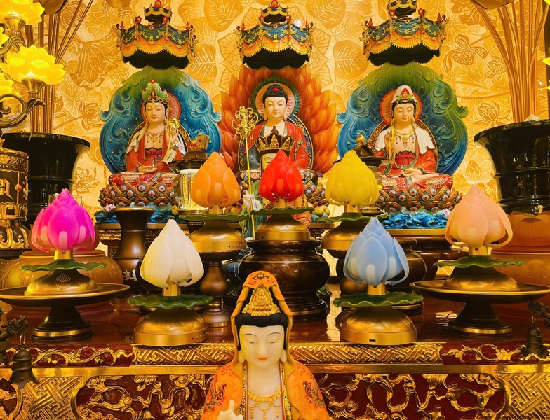 Ý NGHĨA SỬ DỤNGHoa sen biểu trưng cho thanh tịnh và giác ngộ. Ánh sáng màu tượng trưng cho sự viên mãn, giúp bàn thờ có sinh khí, không gian thờ tự ấm hơn – từ đó lòng người cũng dễ an hơn.