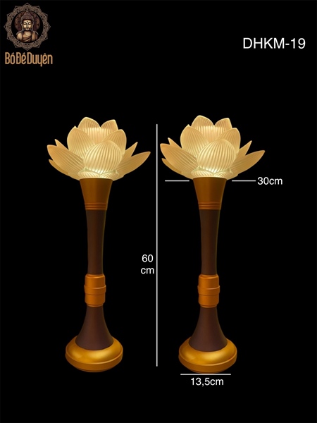 Hoa sen là biểu tượng của thanh tịnh – giác ngộ – trí tuệ, đèn hoa sen mang ánh sáng lưu ly tượng trưng cho ánh sáng Phật pháp soi rọi, giúp không gian thờ thêm ấm áp, trng nghiêm và cát tường.