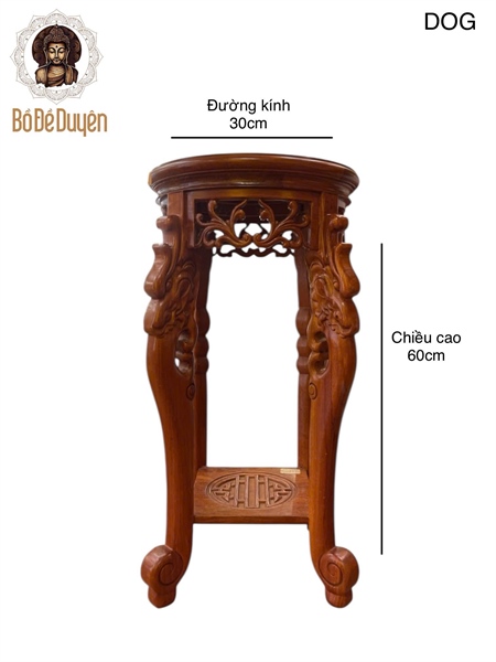Đôn gỗ tròn được chế tác từ gỗ tự nhiên, dáng đứng cao, mặt tròn cân đối. Phần thân chạm khắc hoa văn cổ điển mềm mại, chân đôn vững chắc, tạo cảm giác trang nghiêm – ổn định – bền bỉ, phù hợp làm bệ tôn trí tượng Phật, Bồ Tát hoặc pháp khí lớn.
