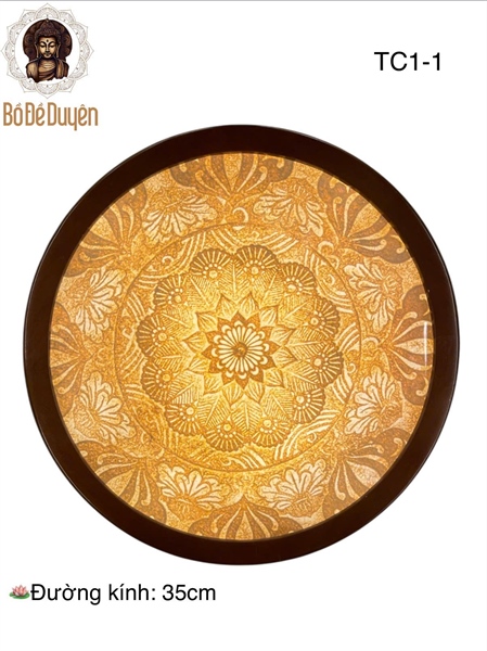 Sản phẩm được chế tác từ trúc chỉ với họa tiết tinh tế, ánh sáng tỏa đều, mềm mại, tạo cảm giác an hòa và sâu lắng. Thiết kế hình tròn đường kính 35cm tượng trưng cho sự viên mãn, tròn đầy, phù hợp treo hoặc lắp phía sau tượng Phật, Bồ Tát, giúp không gian thờ cúng thêm trang trọng và thanh thoát.