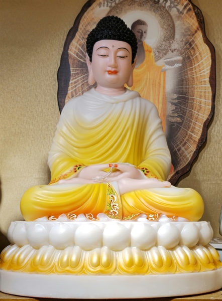 Thích ca ngồi tĩnh tâm bột đá sơn vàng viền hoa